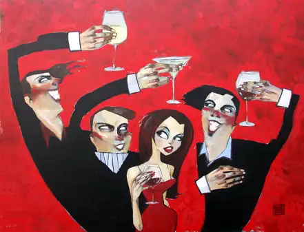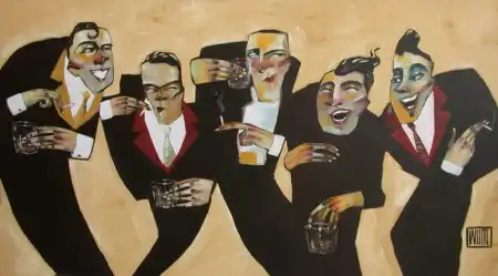 Другая и как мне кажется более интересная сторона творчества Тодда Уайта - рисунки ночной жизни голливудского бомонда - клубы, рестораны, казино, вечеринки с участием персонажей светских хроник. (правда я на его картинах почти никого не узнал).