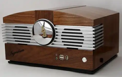 Дизайнер Джефри Стефенсон (Jeffrey Stephenson) считается законодателем мод моддинга в ретро-стиле. Его последняя работа – системник, стилизованный под радиоприемник 50-х годов прошлого века. Внутри, «радиоточки» установлена VIA VB8001 –полнофункциональная системная плата в форм-факторе Mini-ITX с процессором VIA Nano, работающим на тактовой частоте 1,6 ГГц. Объем оперативной памяти – 4 ГБ памяти DDR2. Винчестер – 64GB SSD-диск.