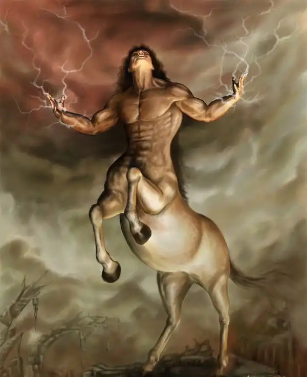 Иногда кентавров считают потомством Посейдона, что находит объяснение в мифологическом прошлом этого божества, тотемически связанного лошадьми и имевшего коня атрибутивным животным. Обычно кентавры показываются дикими и несдержанными существами, в которых преобладает животная природа, но известны и мудрые кентавры, в первую очередь, Фол и Хирон, друзья и учителя Геракла и некоторых других героев.