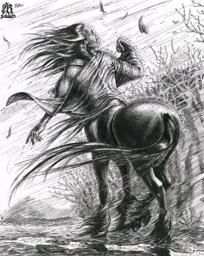 КЕНТАВРЫ,в греческой мифологии дикие существа, полулюди-полукони, обитатели гор и лесных чащ. Они рождены от Иксиона, сына Ареса, и тучи, принявшей по воле Зевса облик Геры, на которую покушался Иксион. Жили они в Фессалии, питались мясом, пьянствовали и славились буйным нравом. Кентавры без устали сражались со своими соседями лапифами, пытаясь похитить для себя жен из этого племени. Побежденные Гераклом, они расселились по всей Греции. Кентавры смертны, бессмертен был только Хирон, сын Филиры, дочери Океана, и титана Кроноса, втайне от Реи сочетавшихся браком. Застигнутый в момент страсти женой Реей, Кронос принял вид коня, и Хирон родился с телом и ногами лошади, но с человеческой головой и руками.