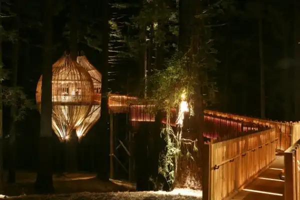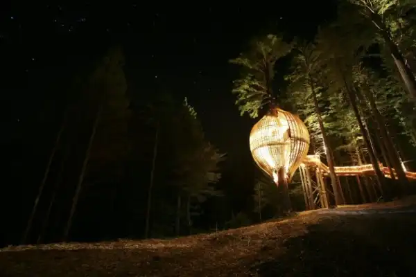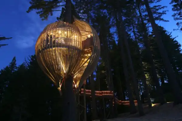 В то время, как по всему миру строят небоскребы и башни из стекла и бетона, в Новой Зеландии построен ресторан на дереве Yellow Treehouse - деревянный ресторан по проекту Питера Эйзинга (Peter Eising) и Люси Гаунтлетт (Lucy Gauntlett) из архитектурного бюро Pacific Environments Architects установлен на высоте 10 метров над землей и уже принимает первых посетителей.