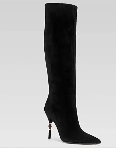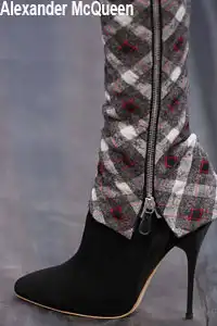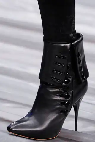На фото: ботильоны Fendi из рыжей замши, замшевая обувь Christian Louboutin с пряжкой, черные ботильоны Gucci с золотистыми запонками, ботильоны Derek Lam из кожи питона, атласные ботильоны Manolo Blahnik с золотистыми деталями