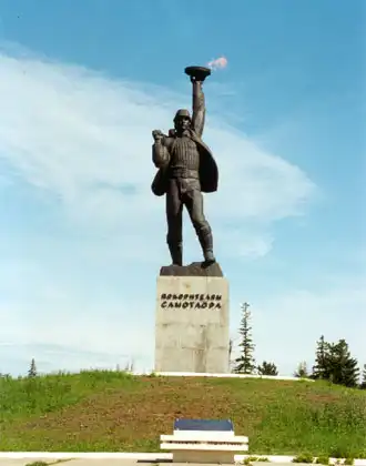Известный каждому горожанину памятник <<покорителям Самотлора>> был установлен в пятидесятилетнего юбилея Нижневартовского района, в июле 1978-го. Место, где он поставлен, выбрано не случайно. На перекрестке шумных магистралей стоит мощная фигура молодого рабочего с горящем факелом в руке. Одна из этих дорог ведет к знаменитому озеру Саматлор, которому обязан Нижневартовск и своим рождением, и своей славой. Памятник <<Покорителям Саматлора>> - достопримечательность города. Сюда приводят друзей, сюда приезжают в день свадьбы молодожены, чтобы положить цветы и сфотографироваться на память о самом счастливом дне в своей жизни. Ведь он олицетворяет первопроходцев - тех, кому достались самые непроходимые болота, самые сильные морозы и самые снежные метели. В народе памятник ласково называют <<Алешей>>. По заказу Нижневартовского горисполкома над его созданием работала группа ленинградских архитекторов в составе Ю.Кожина и И.Василинко под руководством скульптора И.Костюхина. Работа над монументом длилось 9 лет, общая его высота - 22м. Памятник представляет собой 12 - метровую бронзовую фигуру рабочего, установленную на гранитном пьедестале. У его подножия закопана капсула с пожеланиями жителям Нижневартовска XXI века. Ее вскрытие намечено в 2018 году.