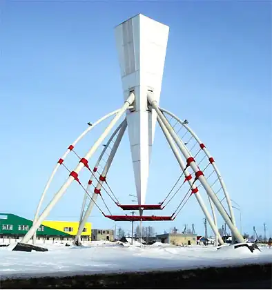 Установлена стела к 35-летию Нижневартовского авиапредприятия 20 июля 2000 года. Памятник представляет собой стелу, устремляющую в высь, в синее небо Самотлора. В верхней части с тех сторон находится герб города Нижневартовска. В жизнь проект был воплощен силами работников Нижневартовского авиапредприятия. Особенно эффектно стела выглядит ночью, когда она освещена подсветкой.