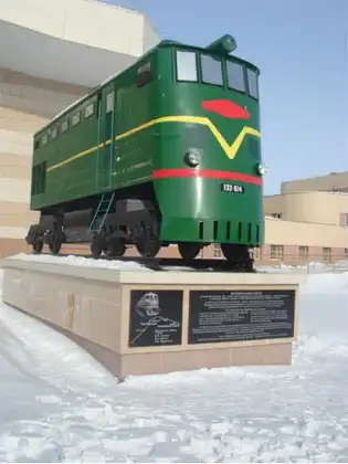МЕМОРИАЛЬНАЯ ДОСКА И МАКЕТ ПАРОВОЗА В ЧЕСТЬ 30-ЛЕТИЯ ЭКСПЛУАТАЦИИ ЖЕЛЕЗНОЙ ДОРОГИ СУРГУТ-НИЖНЕВАРТОВСК И ПРИХОДА ПЕРВОГО ПОЕЗДА В ГОРОД НИЖНЕВАРТОВСК