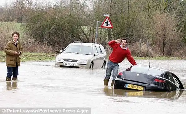 После снегопадов в Англии, там начались наводнения. Снег стал таять.