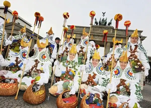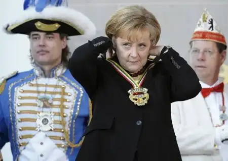 В Берлине в преддверии торжеств ряженые поздравили Ангелу Меркель (Angela Merkel). Канцлеру ФРГ вручили подарки и орден. А затем для гостьи и всех участников церемонии устроили представление. Его главной изюминкой стало выступление гимнастки.