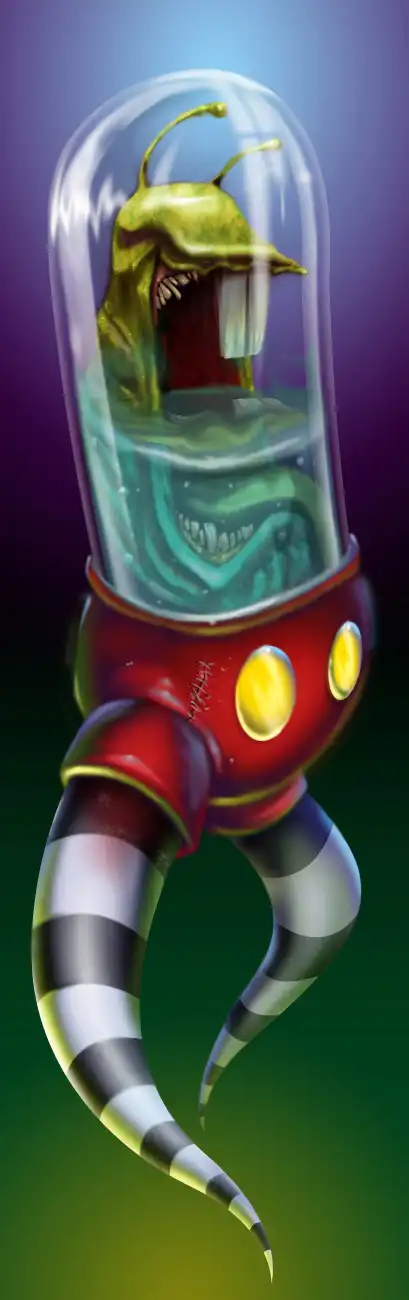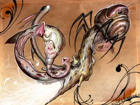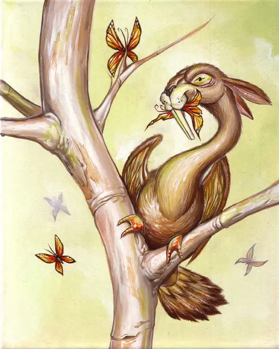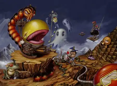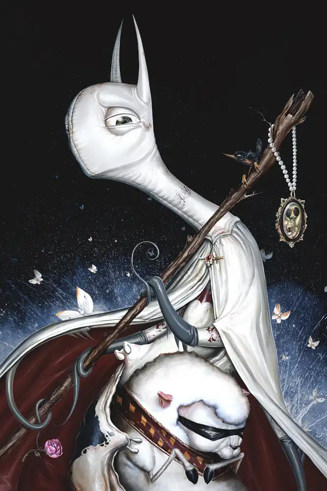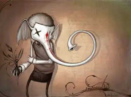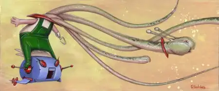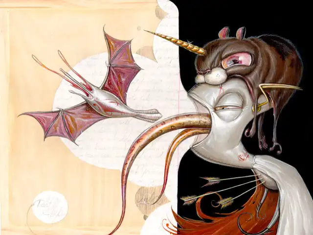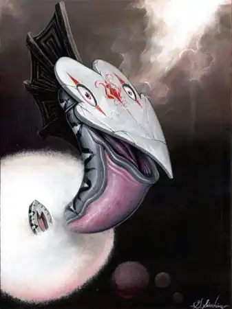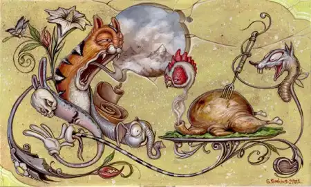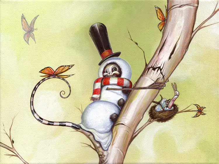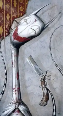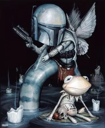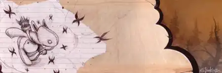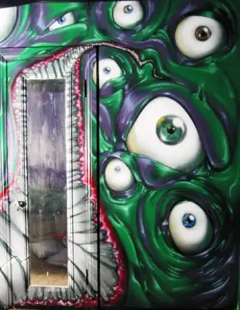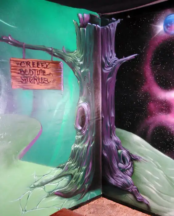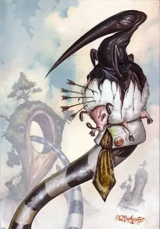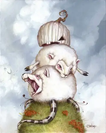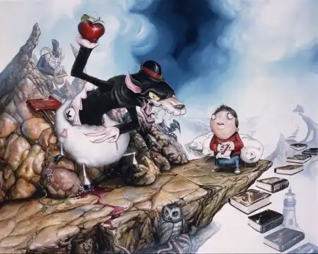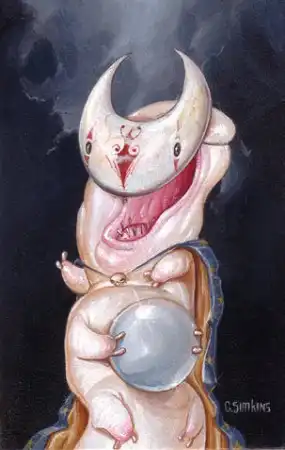 После долгих лет преследований монстров под кроватью Грэг Симкинс явился в обычный мир, принеся с собой изображения того, что он видел в тех забытых снах. Симкинс не всегда использовал кисть, чтобы показать нагромождение характеров.