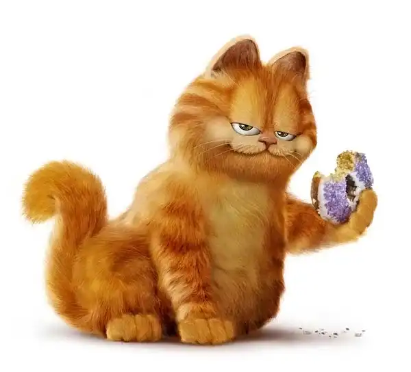 Гарфилд обожает ничего не делать и есть лазанью, но по непонятной причине терпеть не может изюм. Стоит также добавить, что дни сна и абсолютной пассивности резко сменяются минутами бешенности, когда всё, что стоит на пути у Гарфилда, рискует быть уничтожено его когтями.