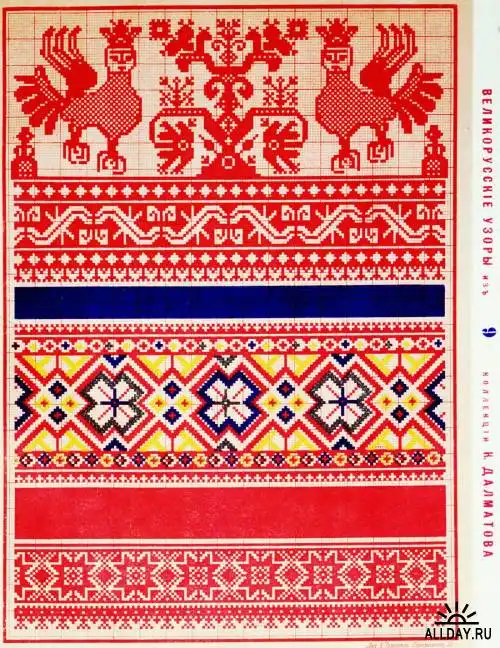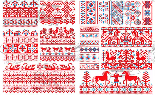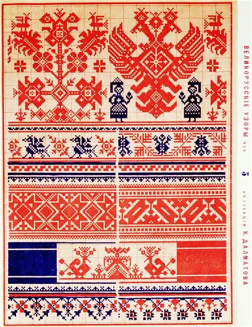 Рушники, покрывала, шарфы, накидки и прочие тканевые предметы издревле носили обереговый характер. Сменив веру языческую на веру христианскую, народ не забыл древних орнаментов и вышивал их на ткани. Образы Мокоши и берегинь-рожаниц, оленцов и охотников, а также солярные символы и символы плодородия дополнились христианскими и державными мотивами: райские птицы, двухглавый орел и т.д.