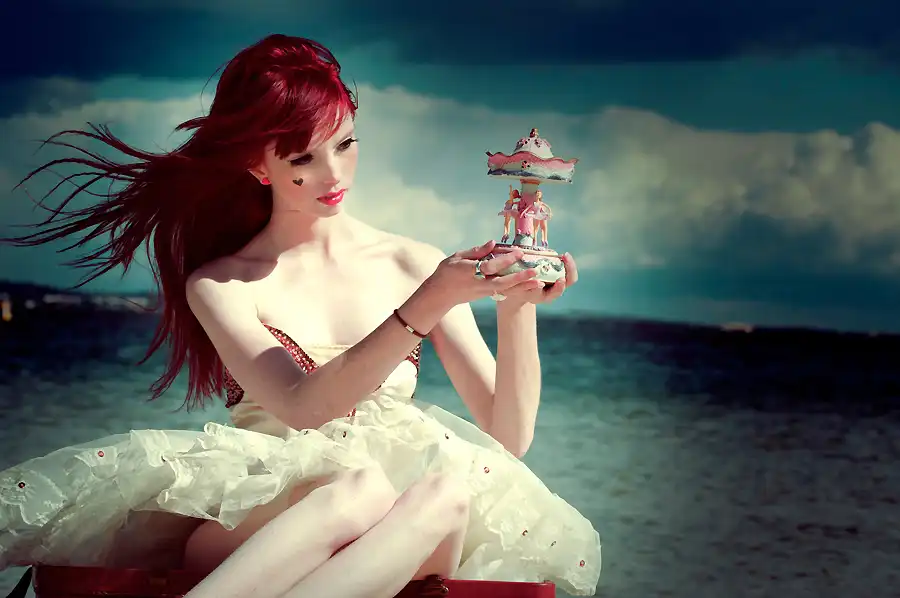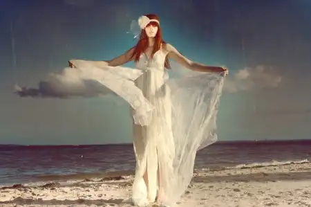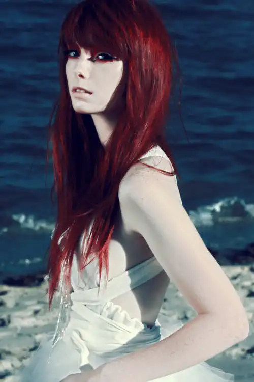Речь совершенно не о той Рыжей из сериала. У нас тут очень красивая фотосессия, которую автор окрестил как "Emily Kiely". Должно быть, так зовут модель. Море, белые легкие платьица и худенькая модель с развевающимися на ветру огненно-рыжими волосами. Кстати, как вы заметите, на некоторых фотографиях немного нереалистичные глаза. Автор говорит: так задумано! Больше такого радикального редактирования не было.