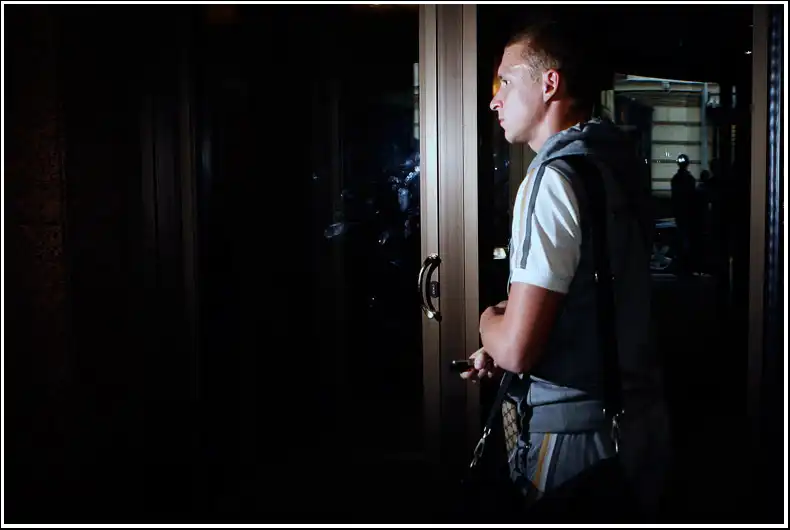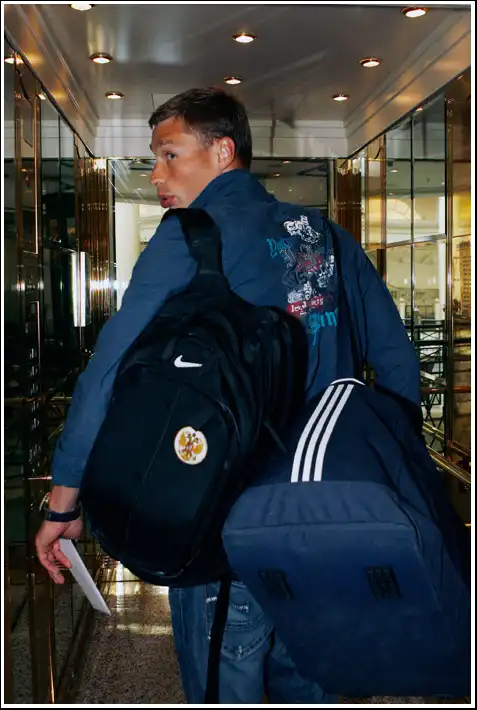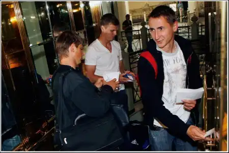 Аршавин, Игорь Денисов и Владимир Быстров скрываются от репортёров в лифте.