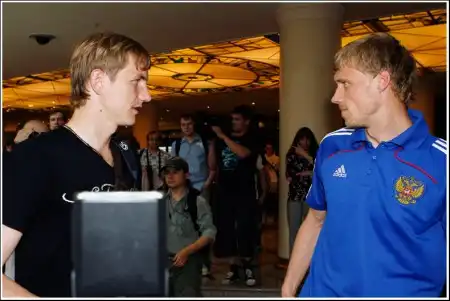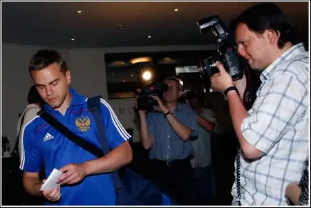 Роман Павлюченко - центр притяжения журналистов.