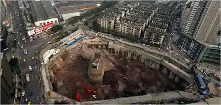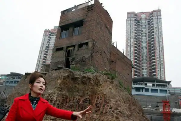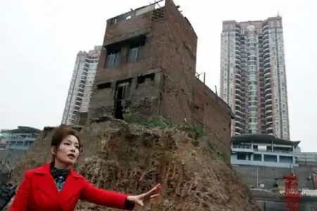 Кто-то скупил всю территорию, но владелец магазина отказался продать свой кусок земли.