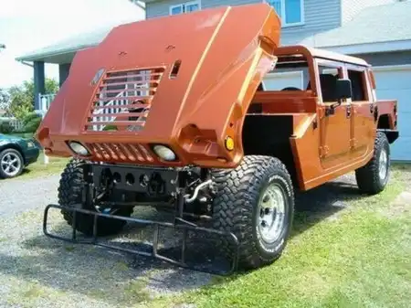 Канадский рукоделец пошел по сложному пути – он отказался он изготовления кузова из банального фибергласа. Вместо этого, он со своей точностью изготовил полномасштабный кузов из стали. Делал полномасштабный Hummer H1, парень, около пяти лет и то, осталось дополнить последние штришки. Такой долговременной и качественной поделке позавидует даже сам официальный дилер daewoo. По понятным причинам создатель назвал свой проект Hummer H150.