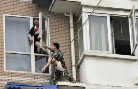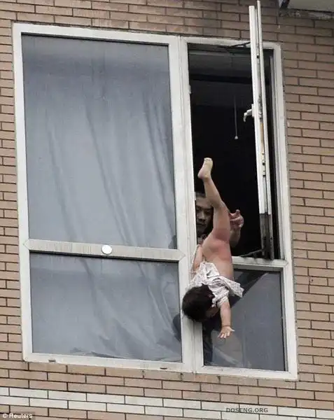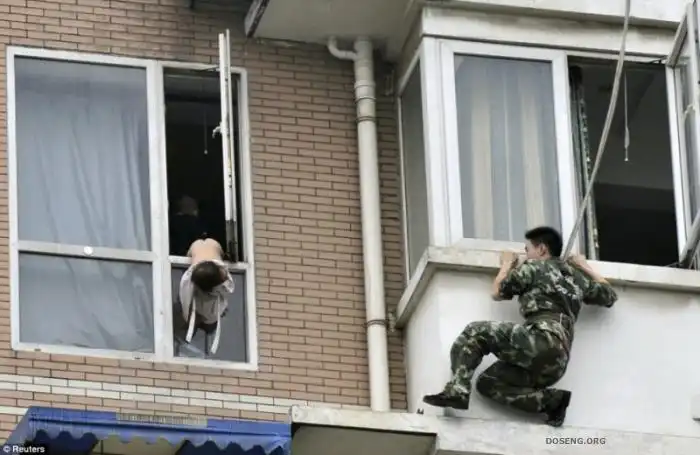 Работник местной спасательной службы проявил свои профессиональные навыки. Он подобрался к окну и смог не только вырвать девочку из рук безумца, но и не дал ему погибнуть самому.