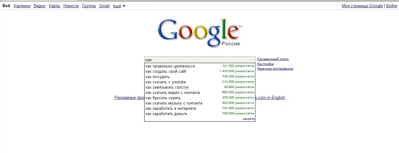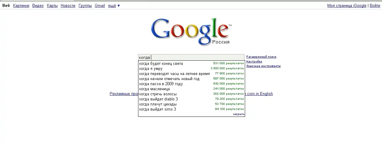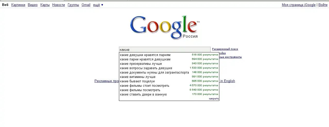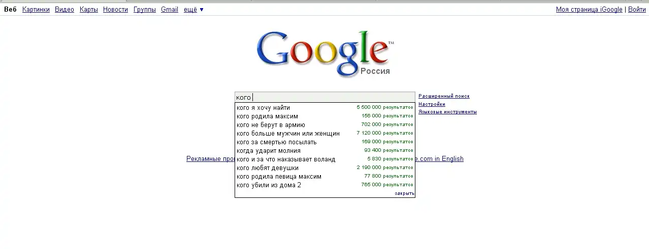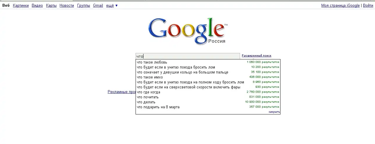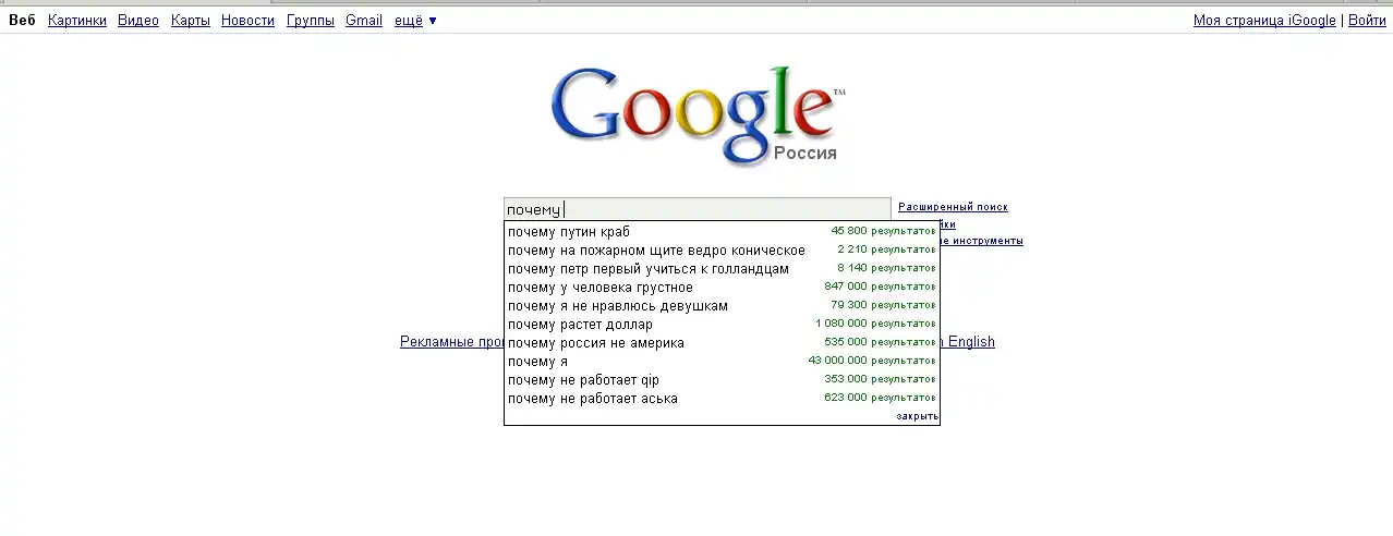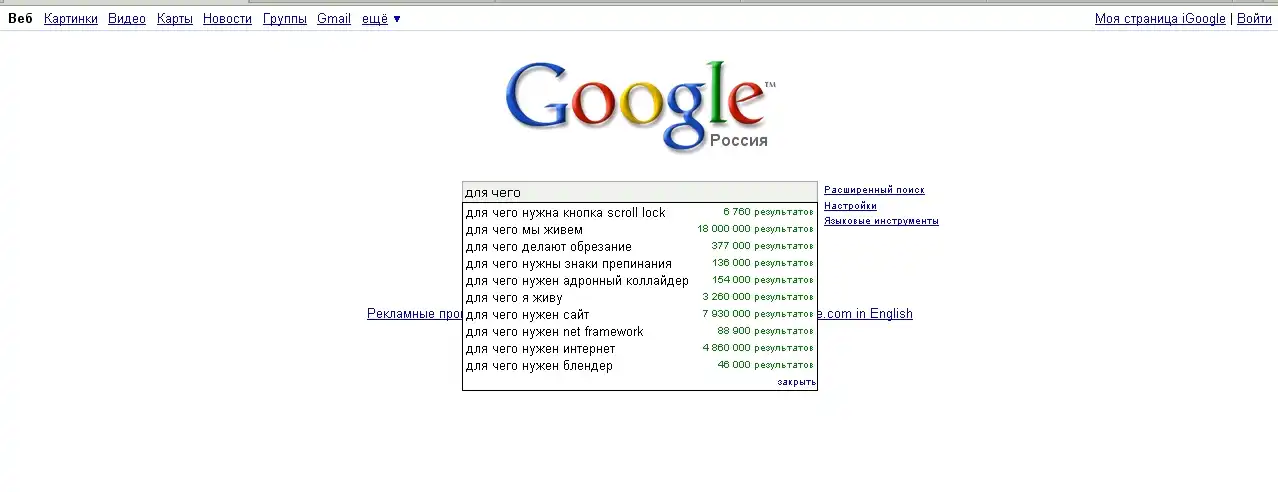 Зашел в Google и решил посмотреть, какие вопросы волнуют Россиян. И стал вводить: "Что?! Где?! Когда?! Почему?! Зачем?! Для чего?! и т.д."