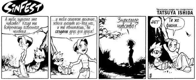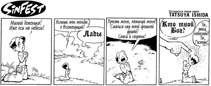 Cинфест начал выходить в 2000м году и выходит до сих пор, обновления появляются практически ежедневно, в настоящий момент вышло более 2000 стрипов.Вокруг Синфеста разворачивается множество споров и даже скандалов, связанных с активным использованием религиозных тем и ненормативной лексики.