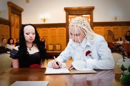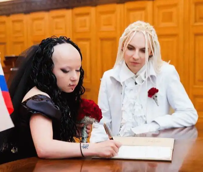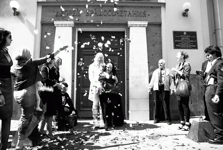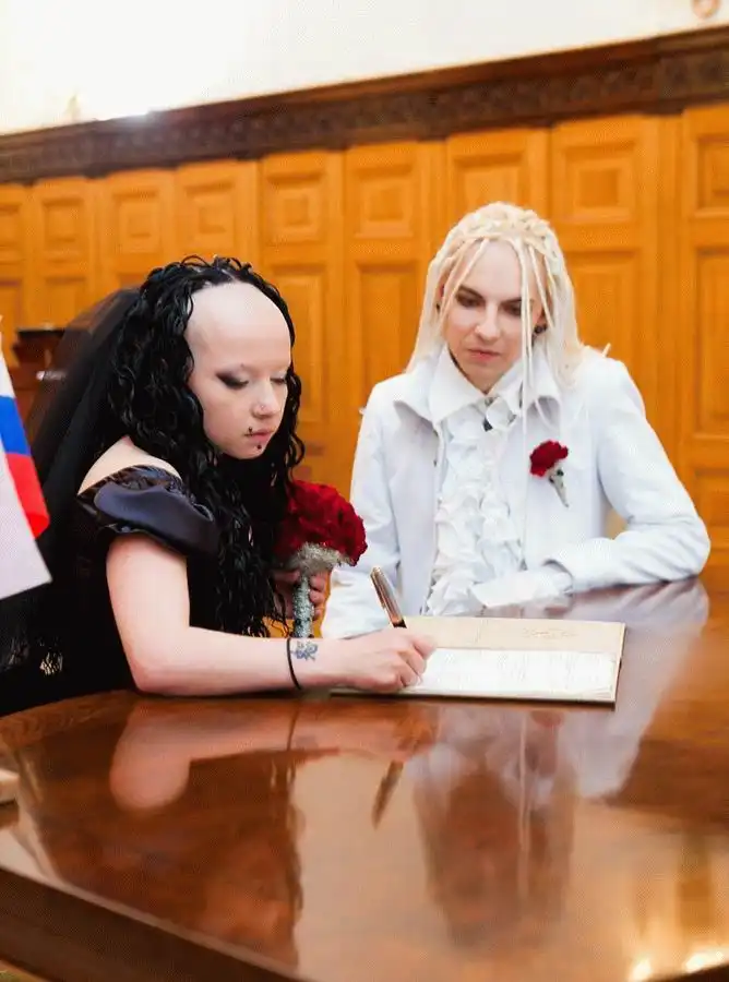 В одном из ЗАГСов Москвы стали мужем и женой эти два молодых человека.