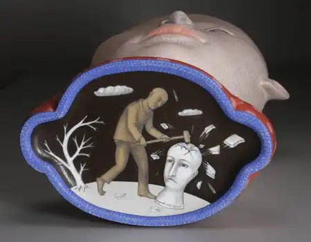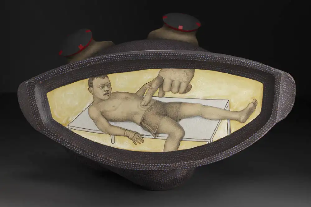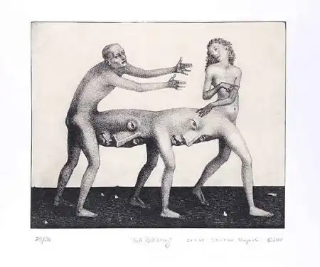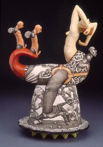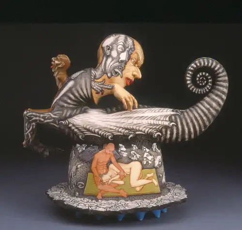 Работы Сергея Исупова всегда многогранны. В его скульптуре органично существует графика, а животное начало причудливым образом переплетается с человеческим. В результате этого синтеза появляются существа, которым самое место во сне.