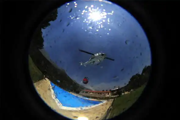 19. Спасательный вертолет набирает воду в бассейне дома в Эль Аренал, неподалеку от Авилы, Испания, так как в регионе бушуют лесные пожары, 29 июля 2009. (PEDRO ARMESTRE/AFP/Getty Images)