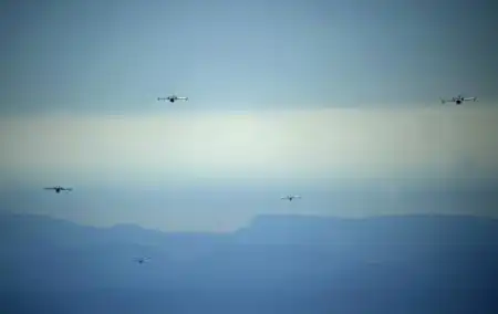 12. Пять самолетов фирмы «Canadair» над лесами Алиаги, неподалеку от Теруэля, Испания, 25 июля 2009. (PEDRO ARMESTRE/AFP/Getty Images)