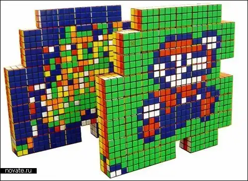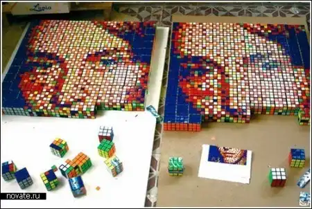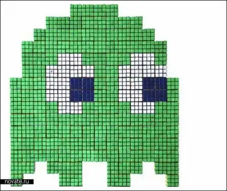 Оказывается, что рисовать огромные картины можно и с помощью Кубика Рубика. Французский художник Invader занимается таким творчеством не первый год. Среди его работ можно увидеть как несерьезные, вроде роботов, монстров из компьютерных игр, так и портреты. Например, мы тут можем увидеть портреты Моны Лизы и Ингресс, сделанные в 2005 и 2006 году соответственно. Кому-то может показаться, будто эти картины просто сделаны из пикселей и не более того, но понятно, что за их созданием стоит огромный труд.