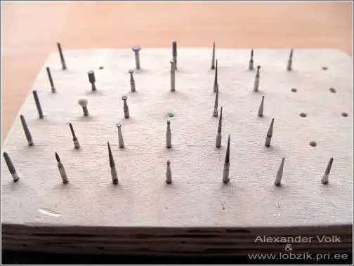 Круглой головкой (0,5-0,7мм) аккуратно сверлим отверстия в «красных» местах