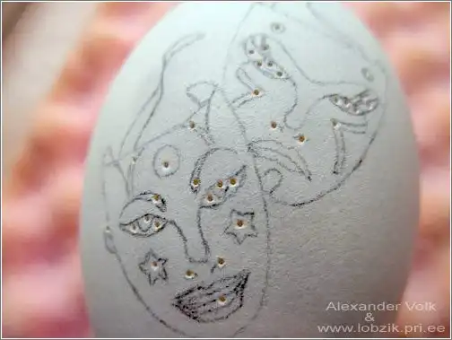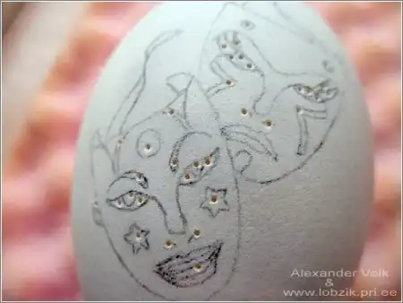 Простым острозаточенным карандашом переносим рисунок на яйцо