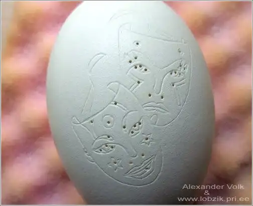 Далее включаем фантазию и проходим всё яйцо. Полировочным камнем убираем неровности. И смотрим, что у нас получилось..."
