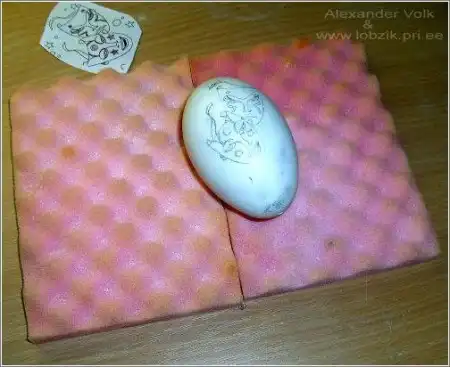 Советую покрыть стол чем–то мягким, вроде поролона. Нечаянно уроненное на твёрдую поверхность яйцо можете забыть сразу. Даже если вы не видите никаких трещин, поверьте, - они есть, и во время дальнейшей работы будут только разрастаться.