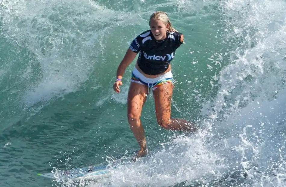 Серфер Бетани Гамильтон во время открытого чемпионата США по серфингу на пляже Хантингтон, штат Калифорния, четверг, 23 июля 2009 года.