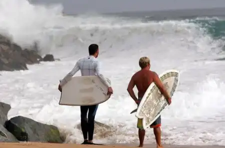 Ветер в лицо, девятиметровые волны, доски для катания и ощущение настоящего полета - вот составные настоящего кайфа для серфингистов, людей подсевших на кайф от моря и катания на доске.