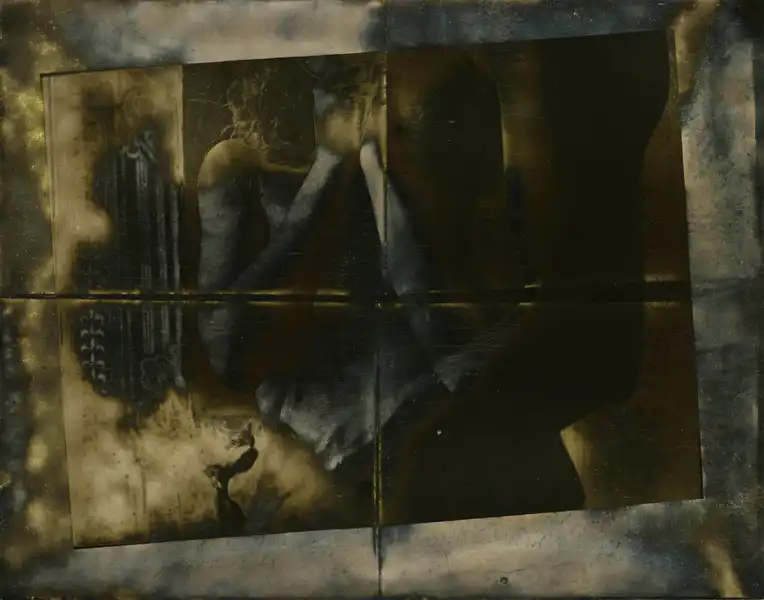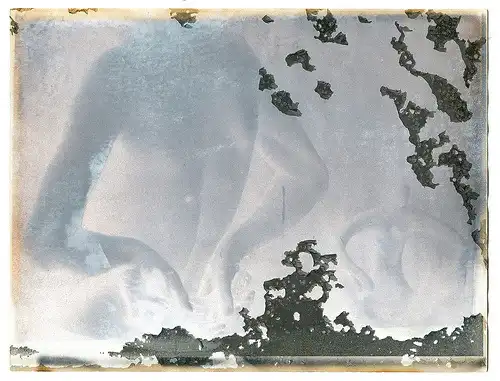 Для меня создание фотографии — материализация мыслей, желание сделать ощутимым то, что сделать таковым невозможно. Я ищу в фотографии красоту и гармонию, которых нет во мне. Процесс создания изображения действительно двухсторонний, я раскрываюсь ему (и процессу, и изображению), и в ответ фотография каждый раз, непредсказуемо реагируя на мои действия, раздвигает границы невозможного преображения картинки. Эмульсия превращается в тончайшую паутину, и поверх изображения, остающегося под ней, в итоге уже на обычном листе бумаги, она собою создает новый образ, никоим образом не связанный с тем изображением, которое она как светочувствительный слой, приняв, пропустила через себя, позволив ему остаться „репринтом” на бумаге. Иногда же, сохраняя изображение, экспонируемое на нее, эмульсия движется по листу исходной картинкой, искажая ее первоначальные формы, растягивая, сжимая, преобразуя. Черно-белая фотография обнаруживает в себе цвета и оттенки, которых в ней быть не должно. И я говорю не только о сверкающем серебре, находящемся в основе фотобумаги, которое поднимается на поверхность, превращая изображение в нечто совершенно отличное от того, что ты увидел сначала воочию, потом, восхитившись (ужаснувшись, влюбившись) захотел удержать, увидел в видоискатель и потом уже на негативе. Конечно, ты поймал картину, но она будет жить своей жизнью. Цвета, появляющиеся на фотографии, действительно непредсказуемы, оттенки золотого („Ты что, посыпаешь фотографии золотой пылью?” — „Да, ездила пару лет назад на Аляску, привезла немного, вот теперь посыпаю, ну и нефтью поливаю тоже”.), прорывающиеся сквозь него фиолетово-синий, темно-красный, серо-синий, желтый. Цвета изображения, прошедшего сквозь эмульсию и оставшегося на поверхности листа, столь же различны, как и те, что проявляются на задерживающемся на эмульсии изображении.