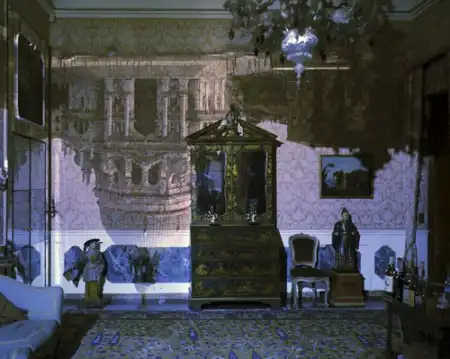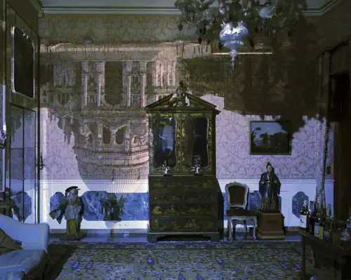 противоположную стенку превратить в экран (из полупрозрачной бумаги или матового стекла), то по законам оптики свет, попавший сквозь отверстие, спроецирует на противоположную сторону перевернутое изображение того, что находится перед коробкой. Века назад устраивались даже комнаты-обскуры, где отверстие проделывалось в стене, а экраном служила противоположная стена. Эта идея и вдохновила Мореля. Он поднял современное восприятие снимков, сделанных камерой-обскурой, на новый уровень. В работах Мореля городские пейзажи или архитектурные виды проецируются в перевернутом виде на стены детских спален, гостиничных номеров, музейных залов. Два мира накладываются друг на друга: изображение внешней среды — на интерьер помещений.