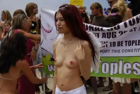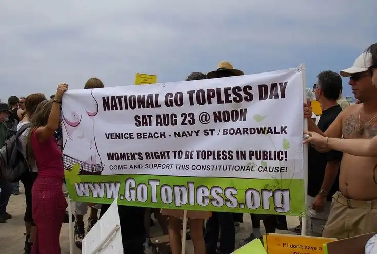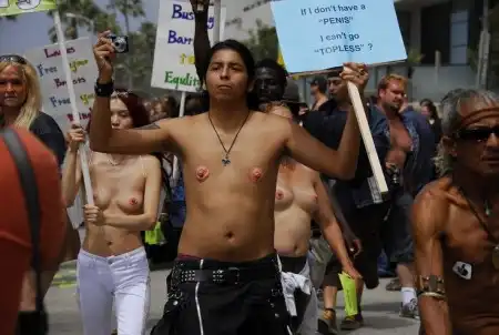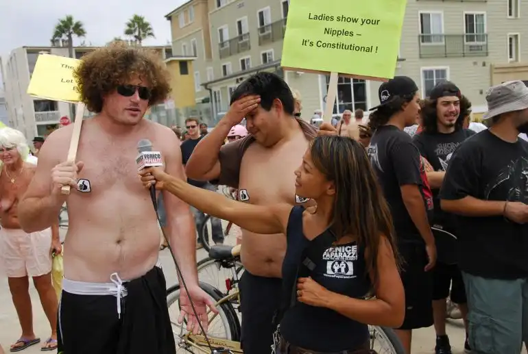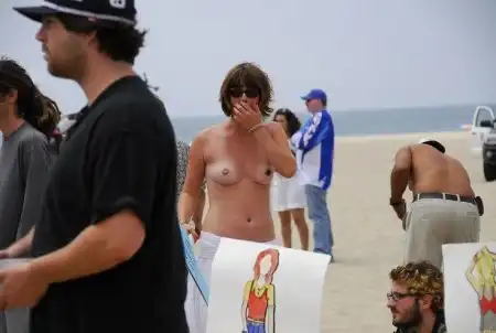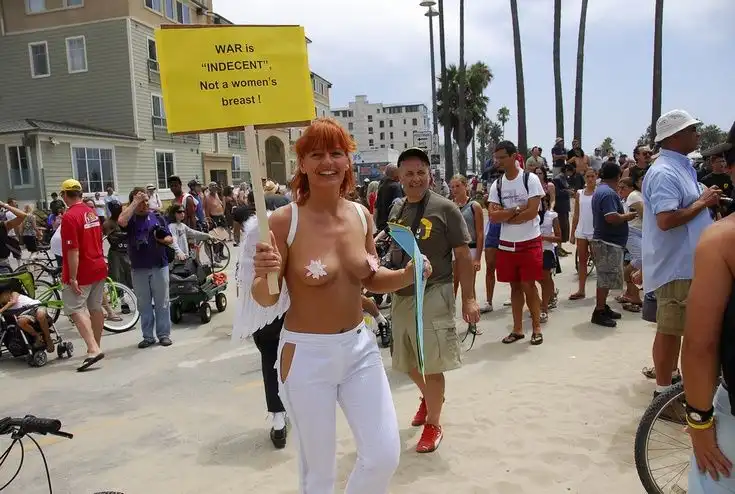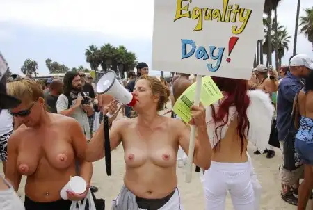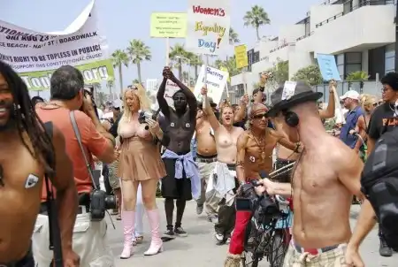 В США на пляже Венис Бич прошла акция протеста, в которой приняли участие недовольные этим тётьки.