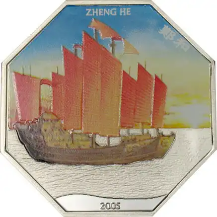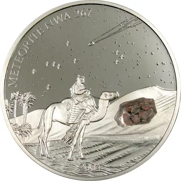 Монета со вставкой древней монеты с затонувшего в 1743 году корабля «Принцесса Луиза» (Либерия)