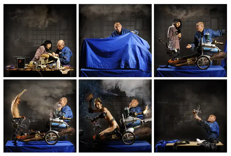 Сейчас живет в Измайлове, снимает в домашней студии. По ночам обходит с далматином Майклом все помойки округи, откуда черпает реквизит и вдохновение.