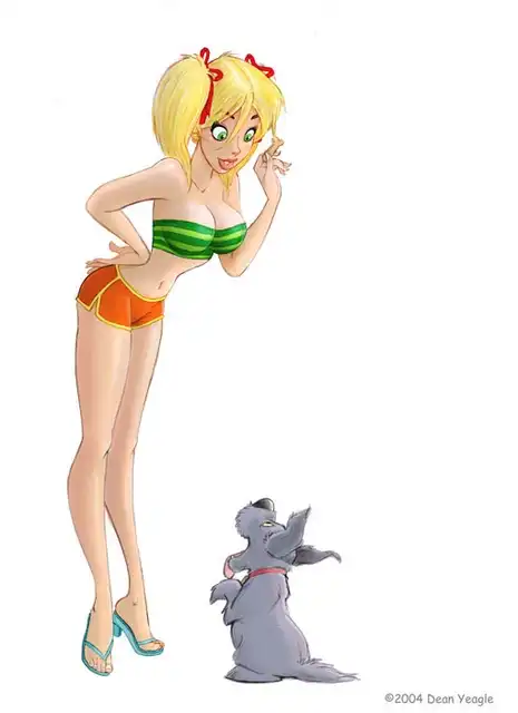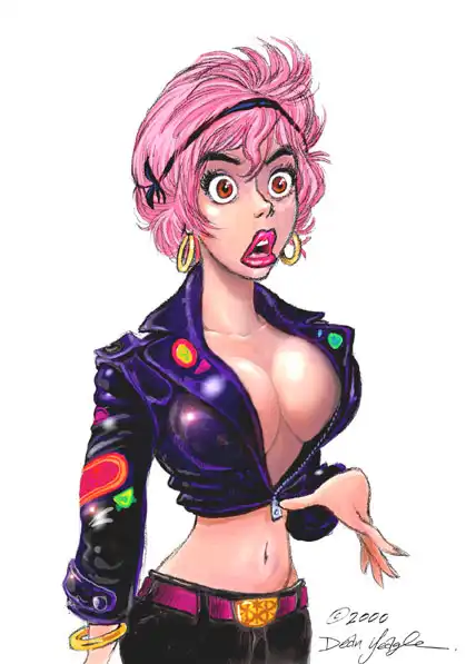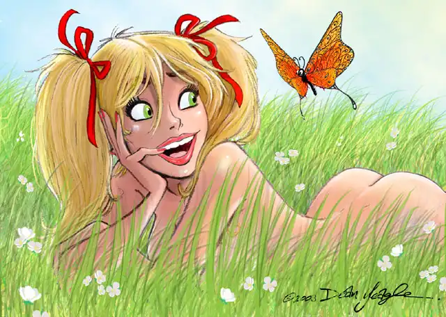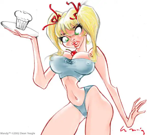 Персонаж,нарисованный художником Dean Yeagle-девушка по имени Мэнди,представленная на рисунках в разных ситуациях и типажах.