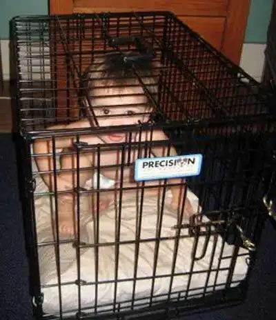 Так, вот вам своеобразное продолжение. Существует специальная компания, которая производит клетки для детей, и они утверждают, что заключение дисциплинирует и защищает ребенка.