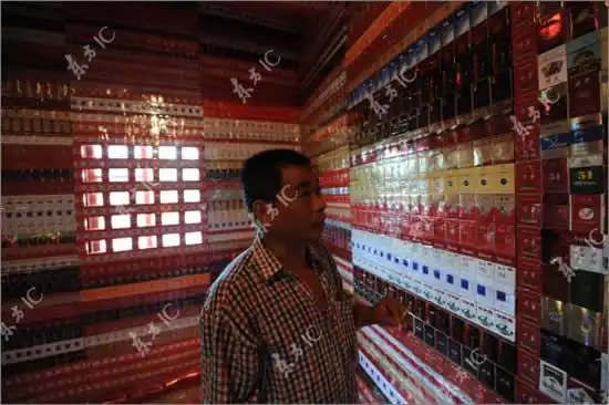 Один любитель сигарет создал из своей квартиры рай для курильщиа, заменив все внутри сигаретными пачками. Стены обкреены пачками, пол и потолок тоже, даже мебель из них.