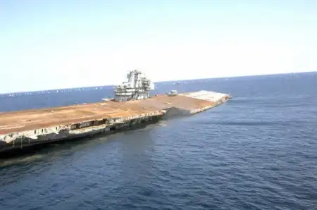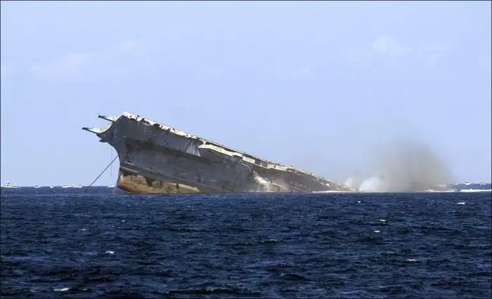 Авианосец Oriskany затопили в 24 милях от побережья Пенсакола, Флорида, 17 мая 2006 года. Авианосец станет искусственным рифом, на радость рыбкам, растениям и многочисленным аквалангистам. Среди последних есть целые клубы любителей не просто понырять, а непременно там, где находятся затонувшие корабли и суда.