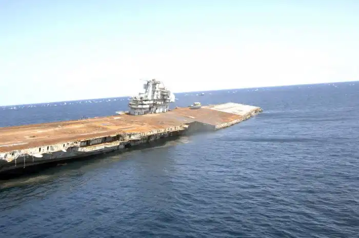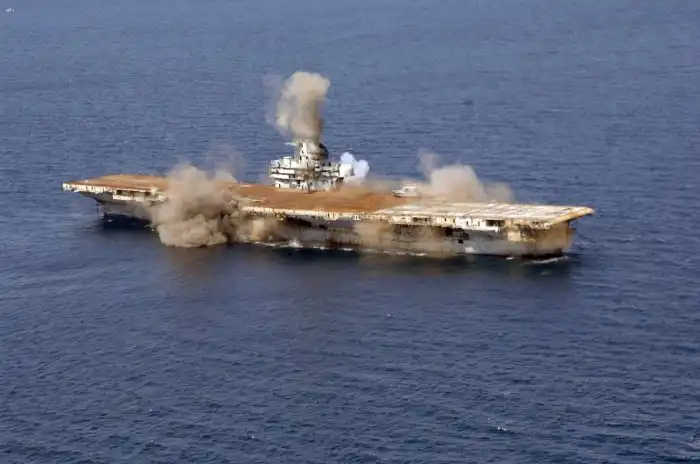 Авианосец стал крупнейшим плавучим объектом, когда-либо специально потопленным человеком. Само потопление стало сложной инженерной задачей. Корабль водоизмещением 32000 тонн и длиной 275 метров тонул 37 минут. Был разработан план затопления авианосца, в рассчитанных местах разместили заряды, чтобы он лег на дно на ровном киле, на глубине 60 метров, а корпус был ориентирован в направлении север-юг. Разумеется, перед затоплением корабль прошел все необходимые проверки всеми возможными организациями, особенно Агентством защиты окружающей среды ЕРА.