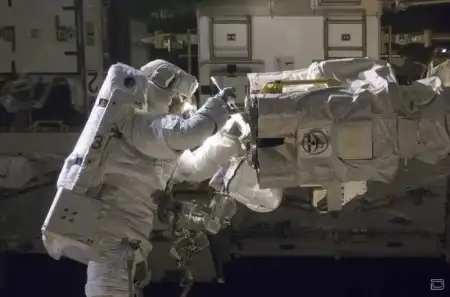 19 ноября астронавты НАСА Майк Форман и Роберт Стетчер на протяжении 6 часов 8 минут работали в открытом космосе.