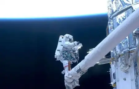 Астронавт Джон Грансфильд занимается ремонтом телескопа Хаббл