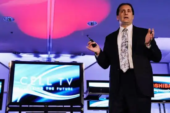 16. Скотт Рамирез из компании «Toshiba» представляет новый телевизор «Cell TV» на выставке CES.