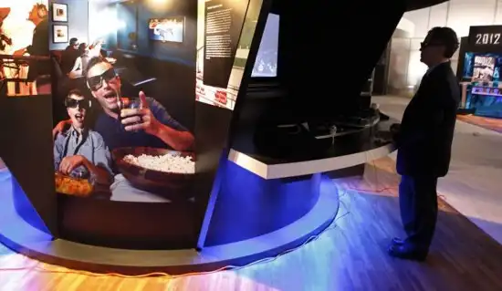 17. Сотрудник выставки смотрит фильм в 3-D на стенде компании «Sony».