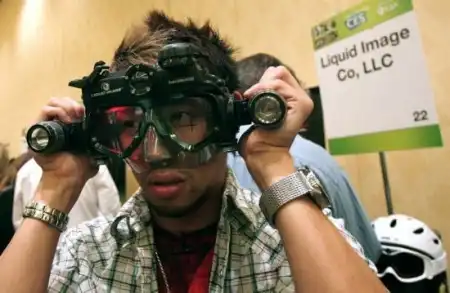 11. Посетитель CES надел устройство «Liquid Image Scuba Series HD320» во время пресс-конференции на Международной выставке технологий 2010. На выставке ожидается около 110 000 посетителей.