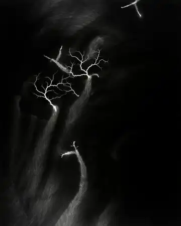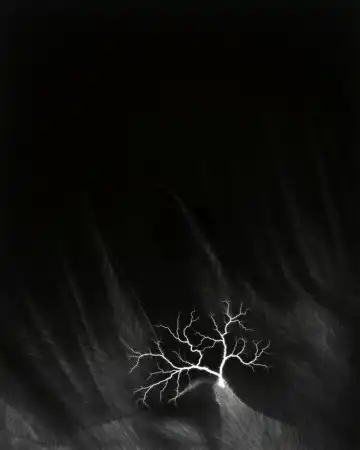 Необычные фотографии электричества. Японский фотограф пропускал ток по металлическому столу и делал снимки специальным способом.