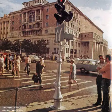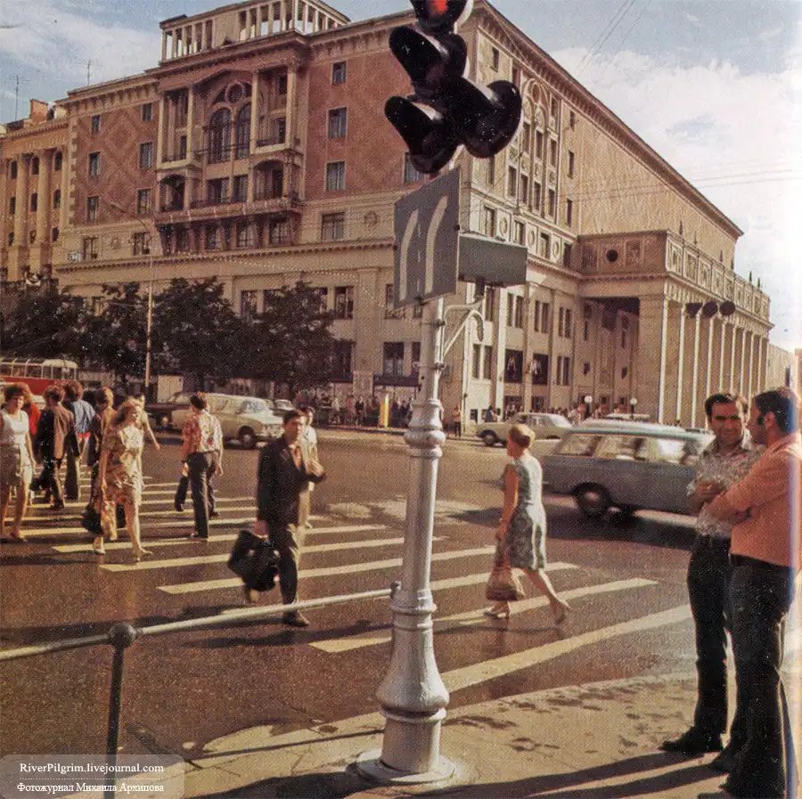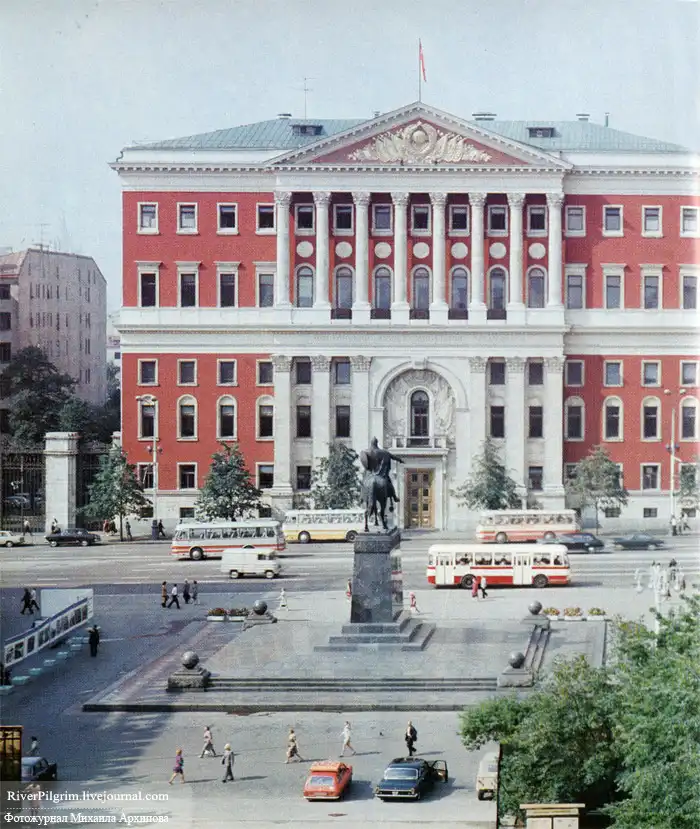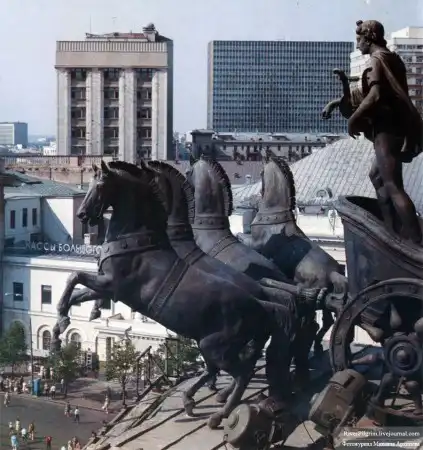 В центре города. Квадрига на Большом театре, здание Госплана и гостиница "Интурист".
